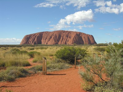 Südwestlich von Alice Springs, nach ca. 450 Km erreicht man den Ayers Rock im Kata Tjuta Nationalpark. Es ist ein gigantischer Felsblock mitten in einer ebenen Landschaft. Man hat das Gefühl er ist vom Himmel gefallen, dass dem nicht so ist beweist seine geologische Entstehungsgeschichte. Die Felsen die Uluru und Kata Tjuta bilden, sind sedimentäre Gesteine die stark zementiert und deshalb härter als die umgebenden Schichten sind. Im Laufe der Jahrtausende hob sich das Gebiet und wurde gleichzeitig durch Wind, Wasser und Temperaturerosionen abgetragen. Übrig bleiben massive Felsen. Der Uluru weisst keinerlei durchgehende Spalten auf und gilt daher für viele als Monolith. Streng geologisch betrachtet ist er es aber nicht, da er nur die Spitze eines unterirdischen Sockels darstellt. Bei Kata Tjuta führten Verwerfungen zu mehreren kleineren Erhebungen.