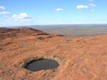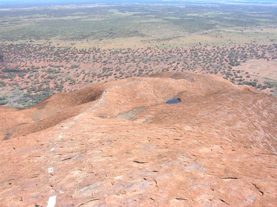 An mehreren Stellen auf dem Ayers Rock hat es rundliche Einbuchtungen von ca. 30-40 cm Tiefe, die vom letzten Regen noch mit Wasser gefüllt sind und einen kleinen See bilden.