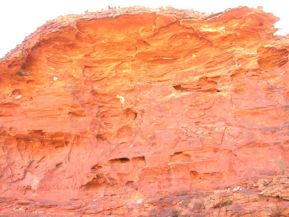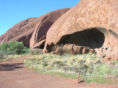 An einigen Stellen hat der Uluru grosse höhlenartige Ausbuchtungen.