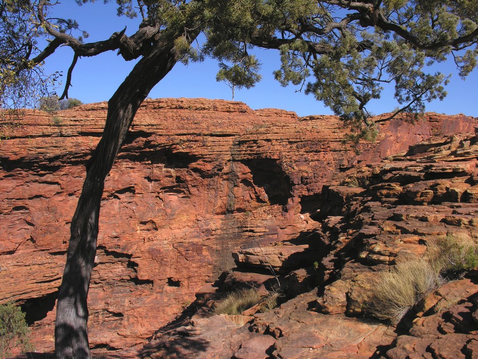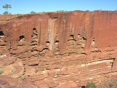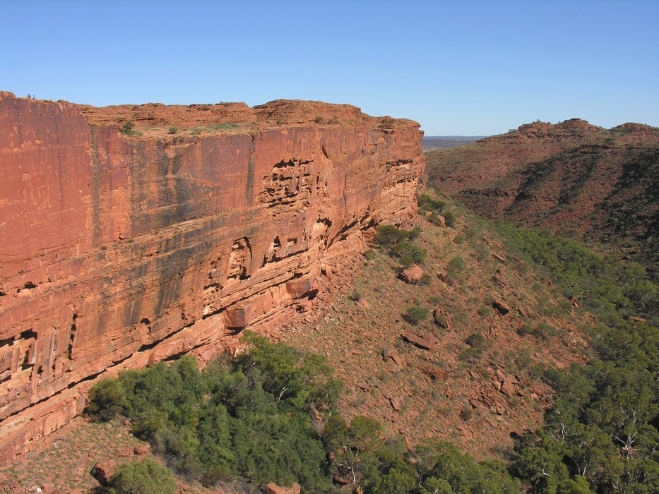 Der Kings Canyon ist die grösste Schlucht Australiens. Man findet am Rand der Schlucht eine Ansammlung von verwitterten Sandsteinkuppeln die wie Bienenkörbe wirken.