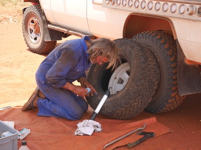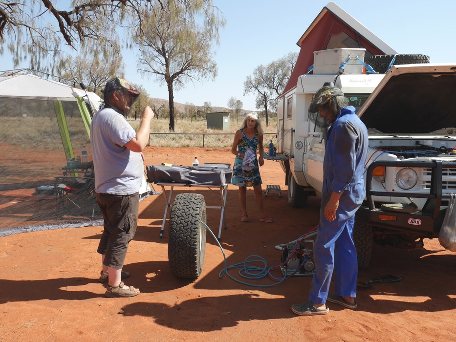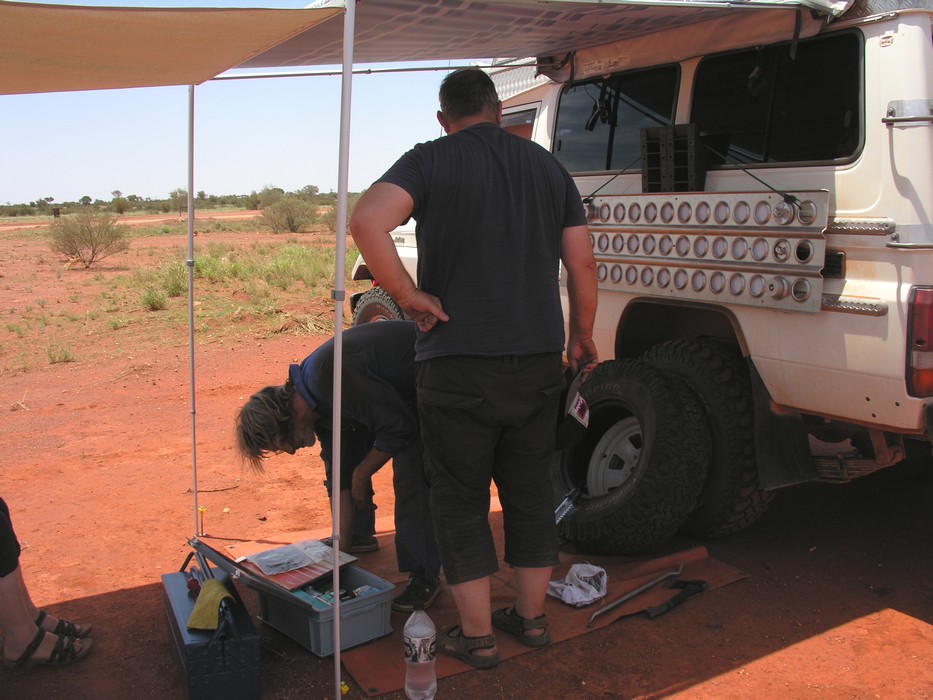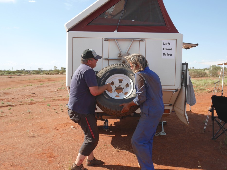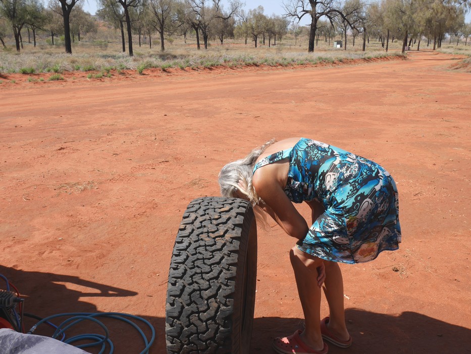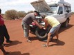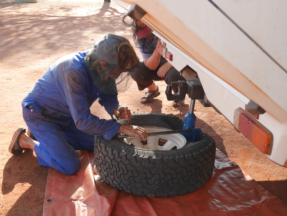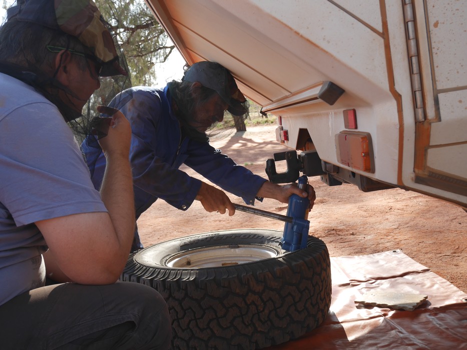 Reifenpanne Nr. 3, diesmal hat es nicht uns erwischt, sondern eine Aborigines Familie mit Ihrem doch sehr ungeeigneten Fahrzeug auf dieser Stecke. Die einheimischen Leute waren sehr schlecht ausgerüstet, weder Schlauchflickzeug noch einen Kompressor hatten sie zur Verfügung.