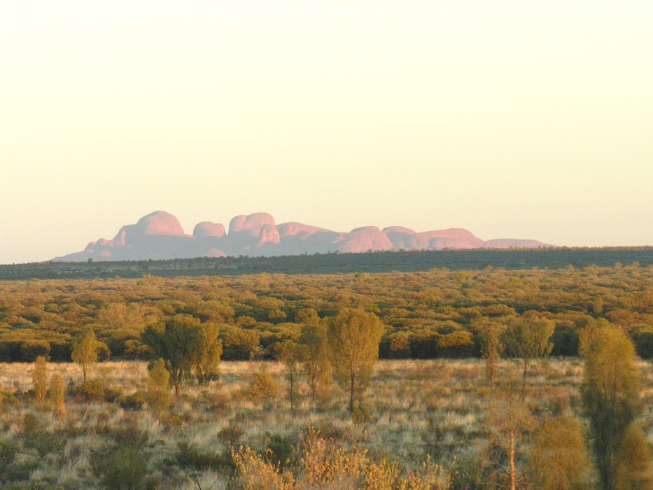 35 Km westlich des Uluru ragt ebenfalls ein zerklüftetes Bergmassiv aus der Spinifex-Ebene hervor, Kata Tjuta (viele Köpfe) heissen die Felsmonumente in der Sprache der Anagu-Aborigines. The Olgas taufte sie 1873 der Entdecker.