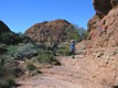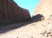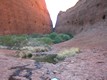 Die Wanderung führt durch eine tief ausgeschnittene Schlucht. Die steil abfallenden Wände der Olgas wirken gigantisch.