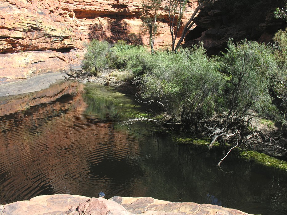 Bei der Überquerung vom Kings Creek in der Schlucht kann man einen Abstecher zum Garten Eden unternehmen, wo sich ein kleiner See gebildet hat und zum Baden einlädt.