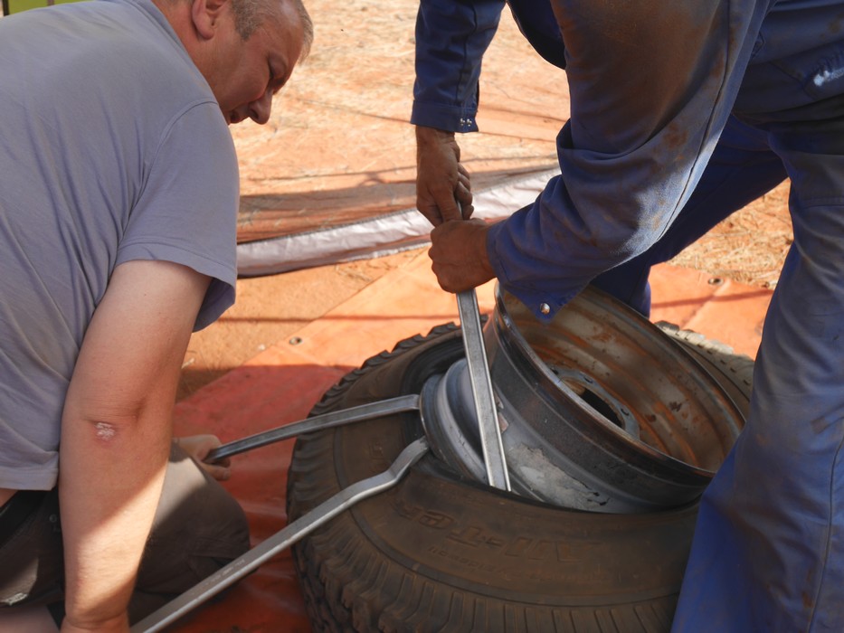 Marco stand mir hilfsbereit zur Seite bei der doch sehr mühsamen Arbeit mit den Pneueisen.