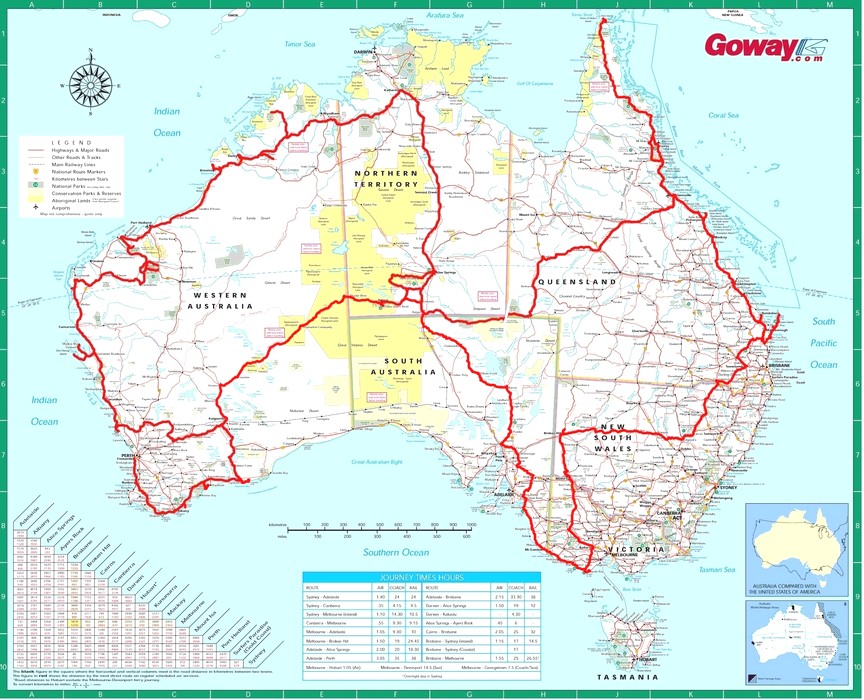 Unsere Reiseroute in Australien, total gefahrene Km 32'000