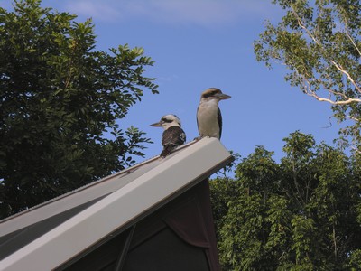 Die Vogelwelt in Australien ist einmalig. Diese putzigen Kookaburras verweilen des öftern bei uns auf dem Dach.