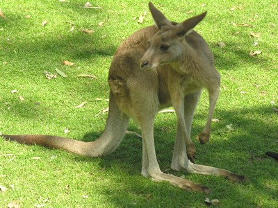 Auch ein Känguru begegnete uns. Das zutrauliche Tier das sich vermutlich an die Menschen gewöhnt hat, konnte man in aller Ruhe fotografieren.