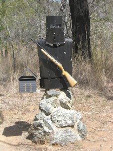 Dies ist ein Briefkasten der besonderen Art am Eingang zu einer Farm. Eventuell ist es Australischer Humor oder die Farm bekommt extrem wichtige Post die bewacht werden muss.