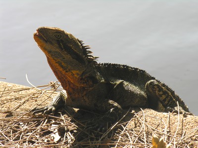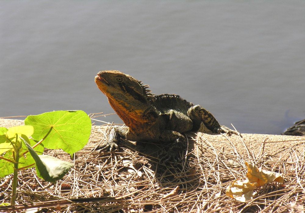 Auf der Rest Area des Matilda Roadhouses ausserhalb Gympie wurde ein kleines Gewässer angelegt wo wir am Morgen diesen Water Dragon entdeckten.