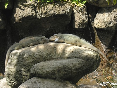Die Grossechsen , die in vielen Arten vorkommen, können bis zu 2 m lang werden und sind mit ihren Krallen gute Kletterer.