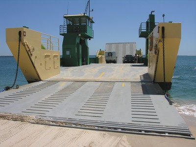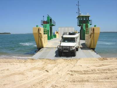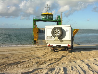 Mit der Manta Ray Fähre fährt man von der Rainbow Beach Inskip Point nach Hook Point im Süden von Fraser Island.