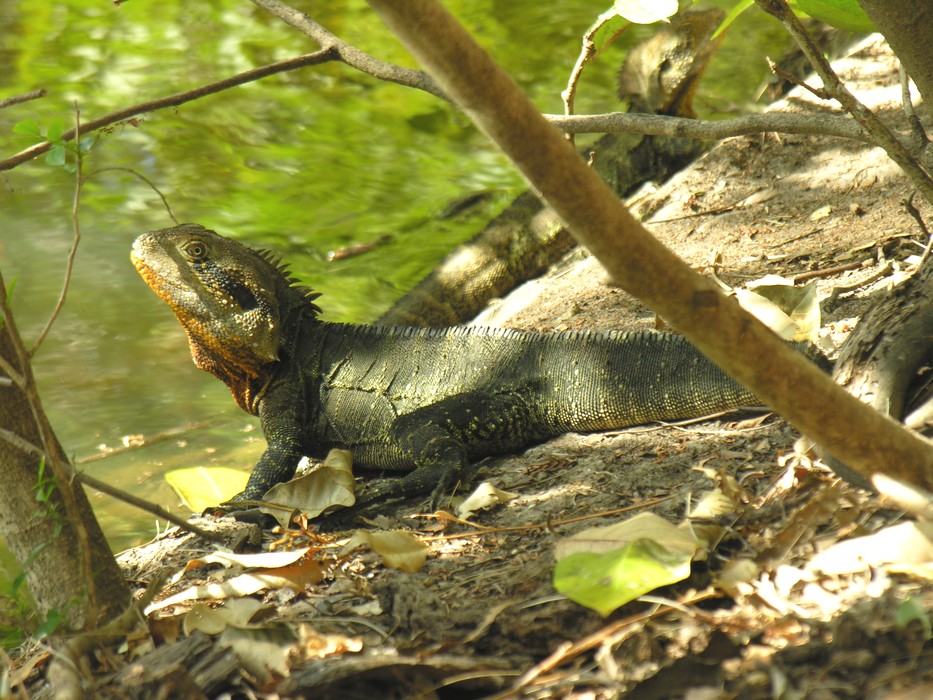 Überall in den Büschen an den Ufern sonnten sich die Water Dragons.