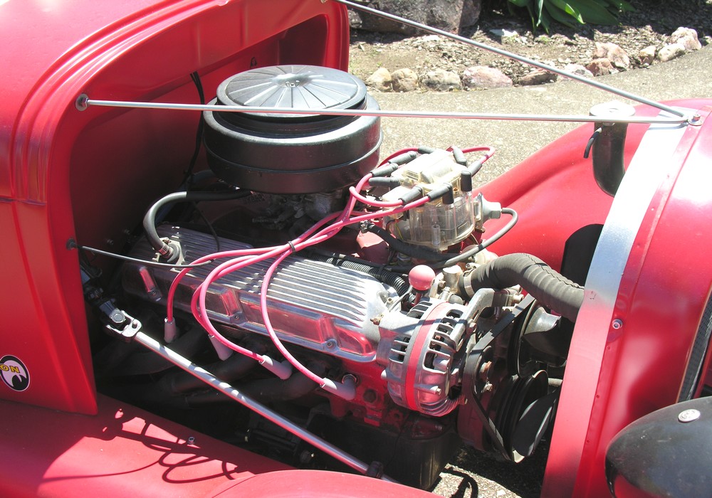 Ein PS starkes V8 Aggregat für das doch sehr kleine Auto.