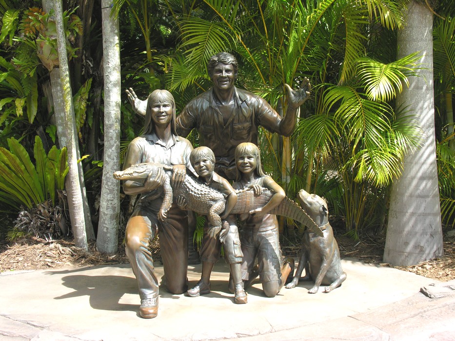 Nach dem tragischen Unfalltod von Steve Irvin im Jahr 2006 wurde zur Erinnerung diese Tribute Statue aus Bronze zusammen mit seiner Familie erstellt.