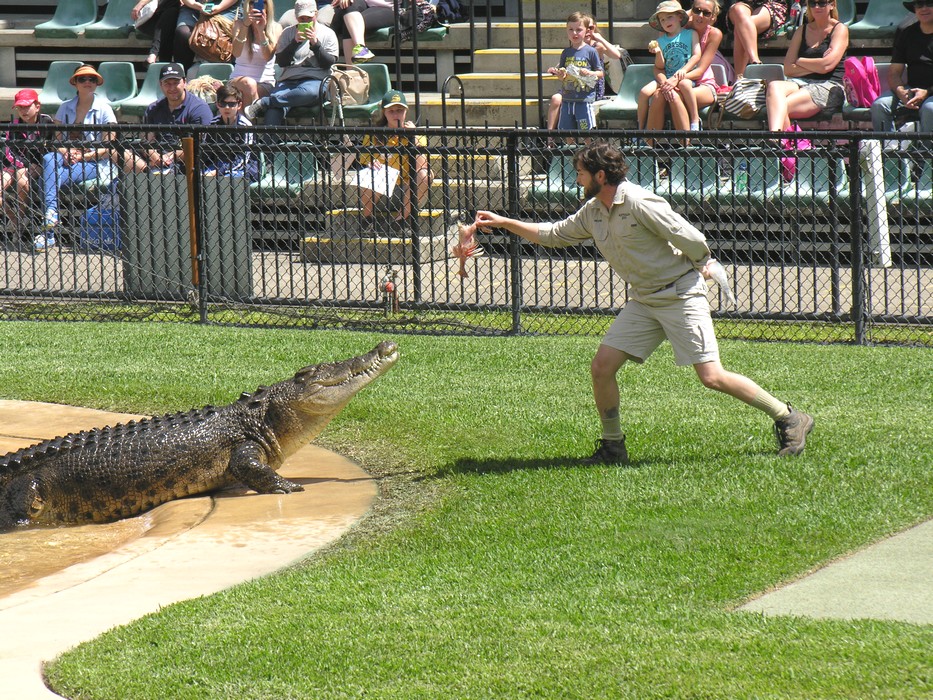 Am Nachmittag wurde im Crocoseum eine Fütterungsshow der Crocodile, die mit lauter ACDC Musik untermalt wird gezeigt. Die sehr spektakulär wirkende Tier-Show hat uns nicht besonders begeistert im Gegensatz zu der einheimischen Bevölkerung, die diese Art von Shows über alles lieben und mit dröhnendem Applaus dies auch massiv quittierten.