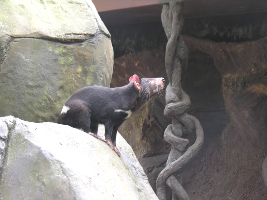 Tasmanischer Teufel, fast ausgerottet wurde das dachsgrosse Beuteltier. Heute steht der jagende Raubbeutler unter Schutz.