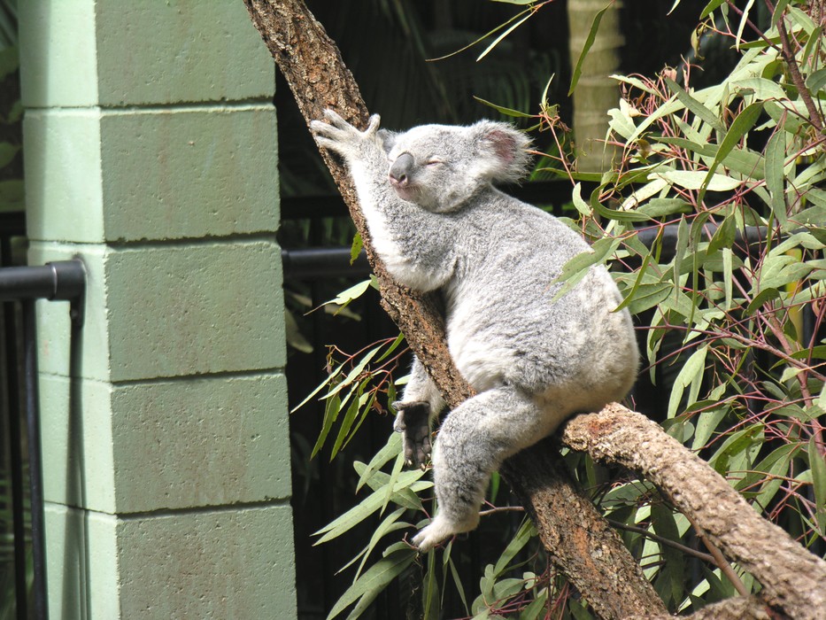 Im Botanischen Garten in Rockhamton entdeckten wir diesen Koalabär in einem Eukalyptusbaum. Da diese Tiere ca. 18 Stunden pro Tag schlafen, liess er sich natürlich auch von uns nicht stören. Er zeige uns auch sein Gesicht nicht was wir etwas schade fanden, er pennte einfach friedlich weiter.