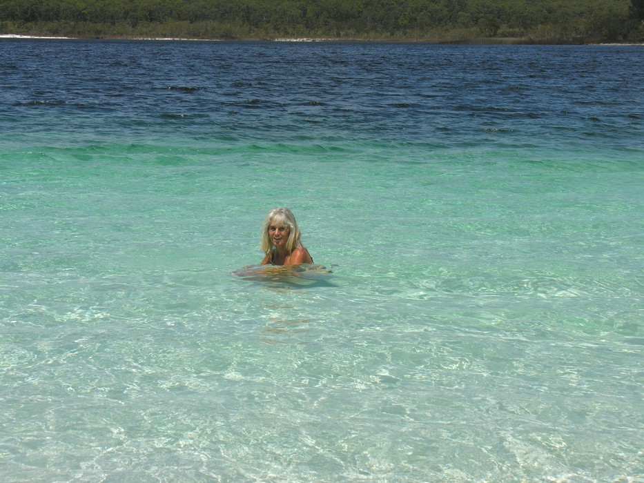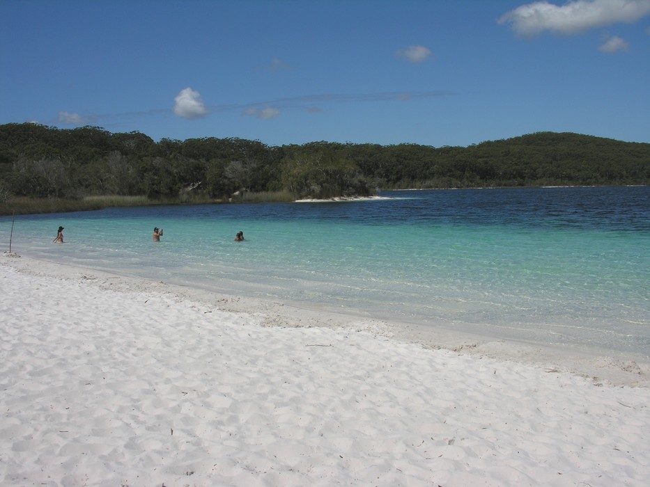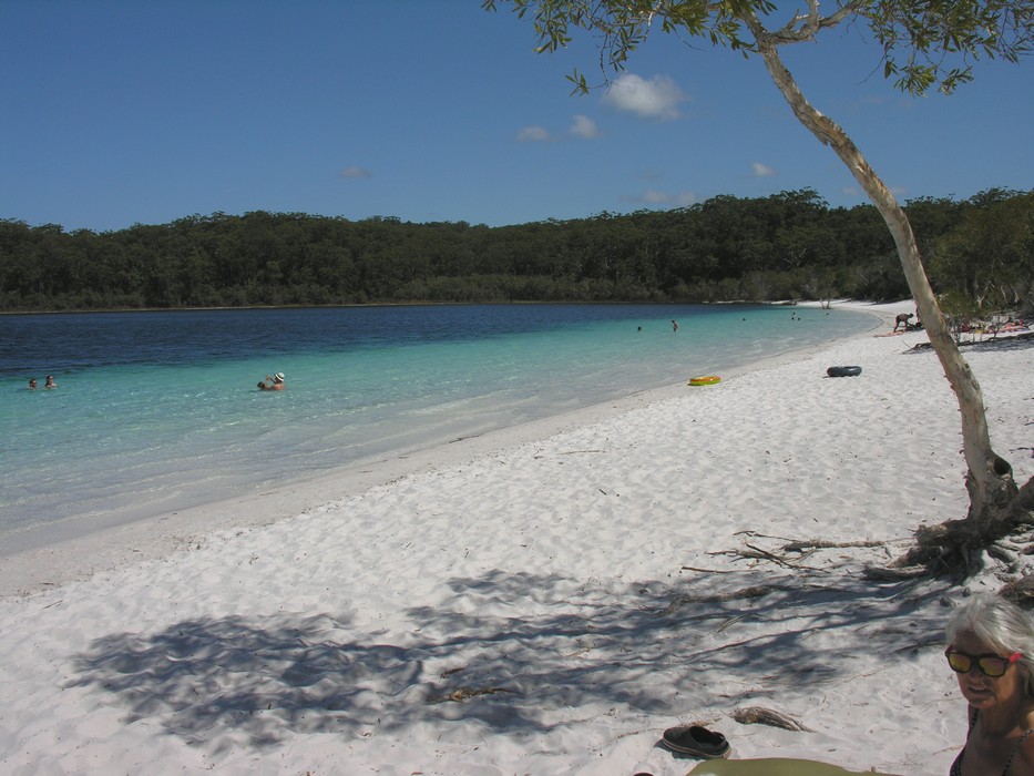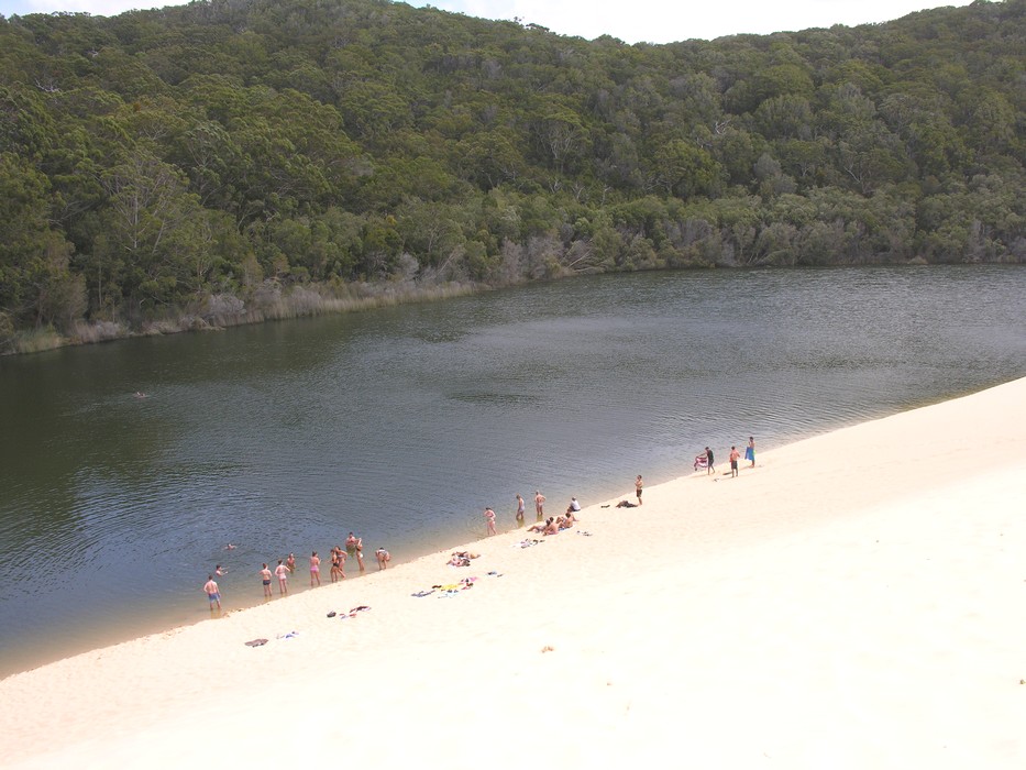 Den tiefsten See der Insel, den Lake Wabby, der direkt an einer steilen Sanddüne liegt kann man nur über eine ca. einstündige Wanderung erreichen. Das Wasser in diesem See ist nicht so glasklar wie der Lake McKenzie und durch eine steil abfallende Düne wird er von Jahr zu Jahr kleiner. Die steile Sanddüne und die Lage des Sees faszinierte uns. Wer will kann auch hier baden.
