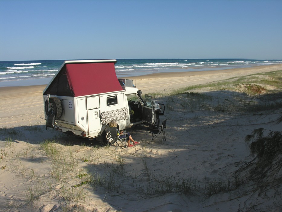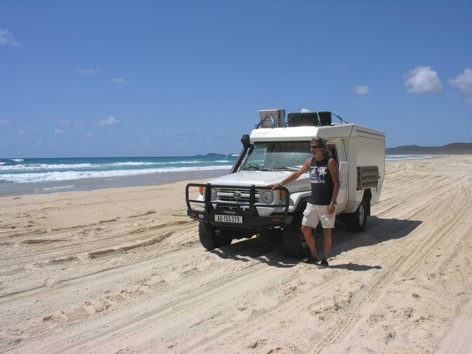 Nur wenige Besucher fuhren an diesem Tag bis zum Sandy Cape, deshalb gehörte der Strand für einen halben Tag fast uns alleine. Nur zwei australische Fischer haben wir hier angetroffen.