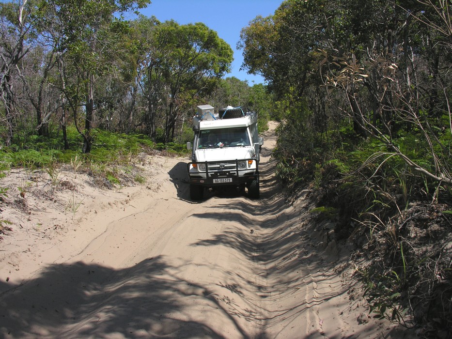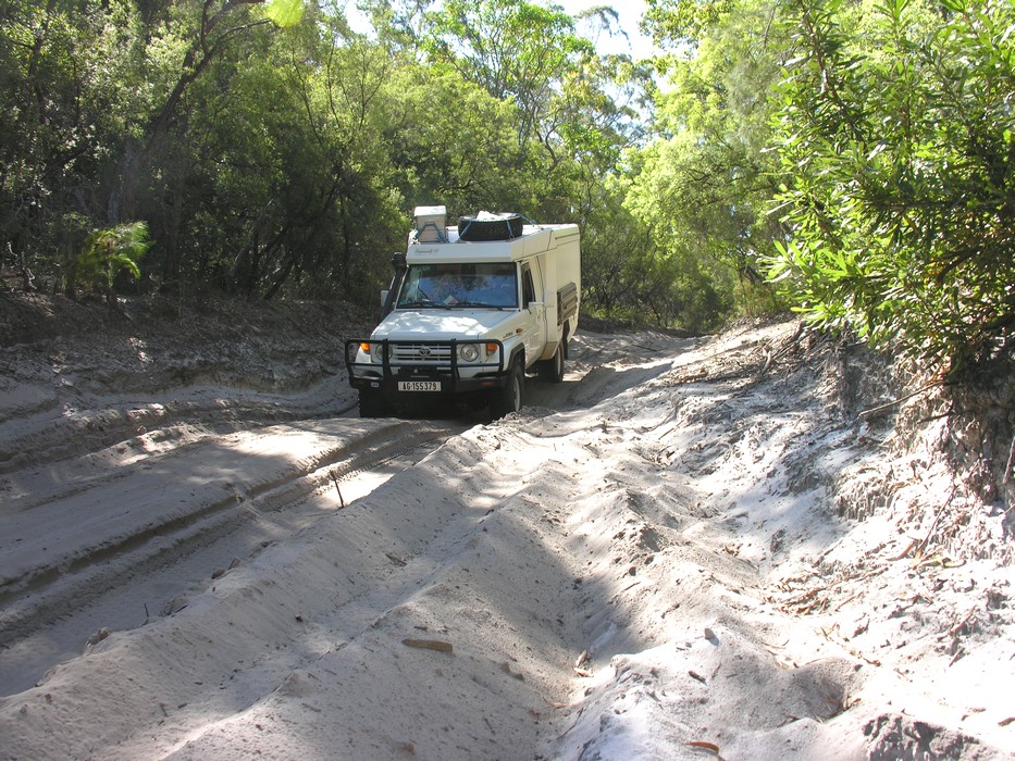 Am zweiten Tag waren wir recht erstaunt als wir Tobias, der als Backpacker mit einem Combi in Australien unterwegs ist, zum sechsten Mal angetroffen haben. Kennen gelernt haben wir ihn in Esperance, im Südwesten von Australien. Um hier auf Fraser Island zu fahren hat er sich mit drei andern Backpackers zusammen geschlossen und sie haben gemeinsam einen Jeep Cherokee für drei Tage gemietet.