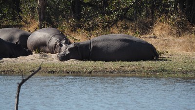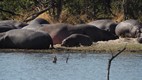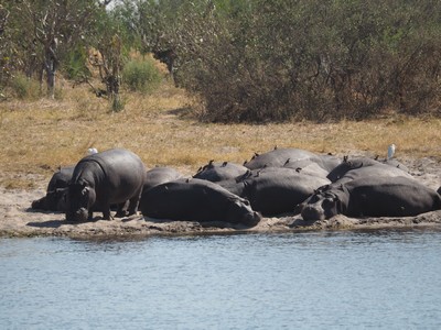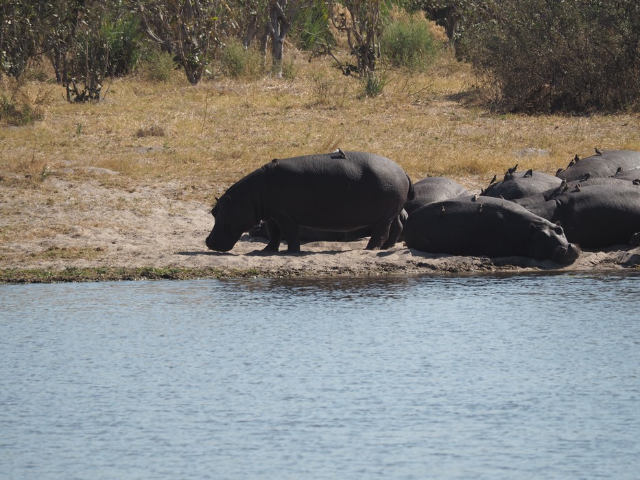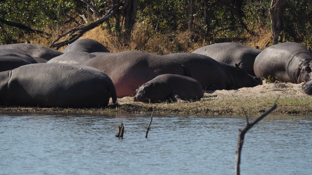 Von Maun aus fuhren wir Richtung Norden und besuchten den Chobe Nationalpark. Gleich am ersten Wasserloch hatte es eine Vielzahl von Hippos die sich sonnten.