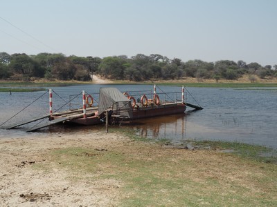 Mit dieser Fähre wollten wir in den Makgadikgadi Pans Nationalpark. Leider bekam die Fährstelle die Meldung, dass keine Besucher in den Park können, da zur Zeit ein Buschbrand herrscht.