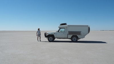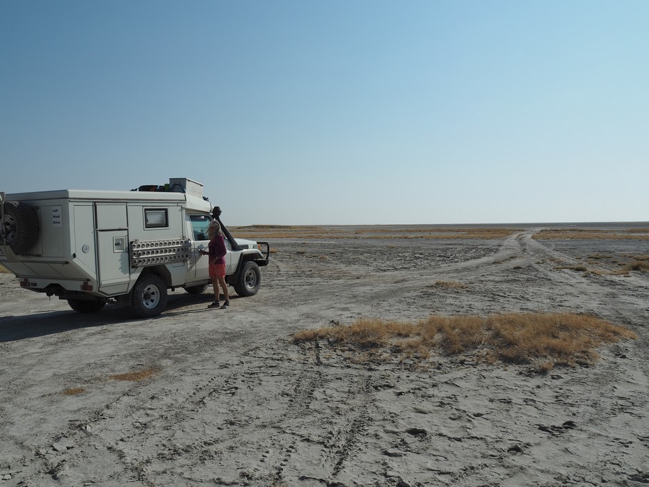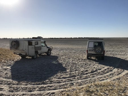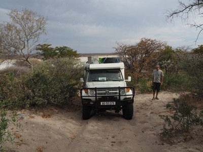 Kurz vor Letlhakane am Rande einer Salzpfanne übernachteten wir. Diesen wilden Übernachtungsplatz kannten wir vom Vorjahr. Wie weit man mit den Autos auf den Salzsee Fahren kann wissen wir nicht deswegen hielten wir uns nur am Rand auf. Einbrechen in solch einem Salzsee kann verheerende Folgen haben.