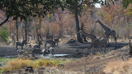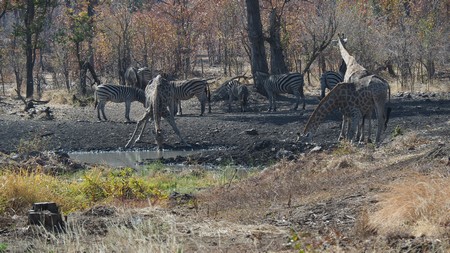 Am Wasserloch zu trinken ist für Giraffen nicht so einfach. Manchmal versuchen es die Tiere zwei bis dreimal bis sie mit dem Kopf so tief nach unten kommen, um an das kostbare Nass zu gelangen. Ein weiteres Problem für die Tiere ist auch der schlammige Untergrund in der Nähe des Wassers, da sie mit ihren dünnen Vorderhufen beim Spagat schnell einsinken und rutschen.