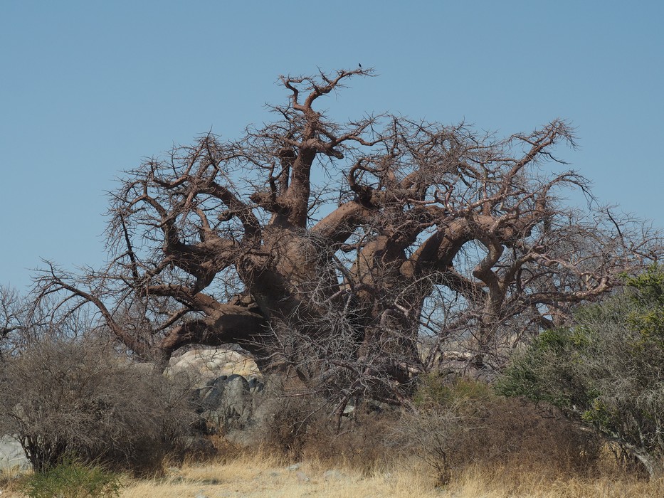 Mehr als zehn Meter kann der Durchmesser eines zerfurchten Stammes betragen. Markant zudem das wirre Zweiggeflecht, bizarr in alle Himmelsrichtungen ragend.