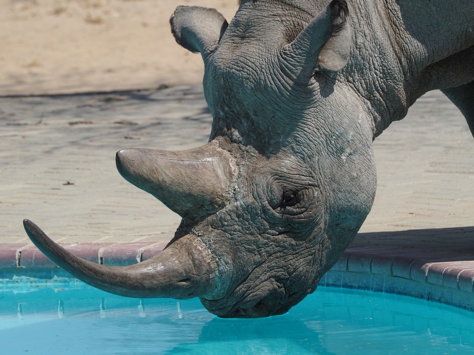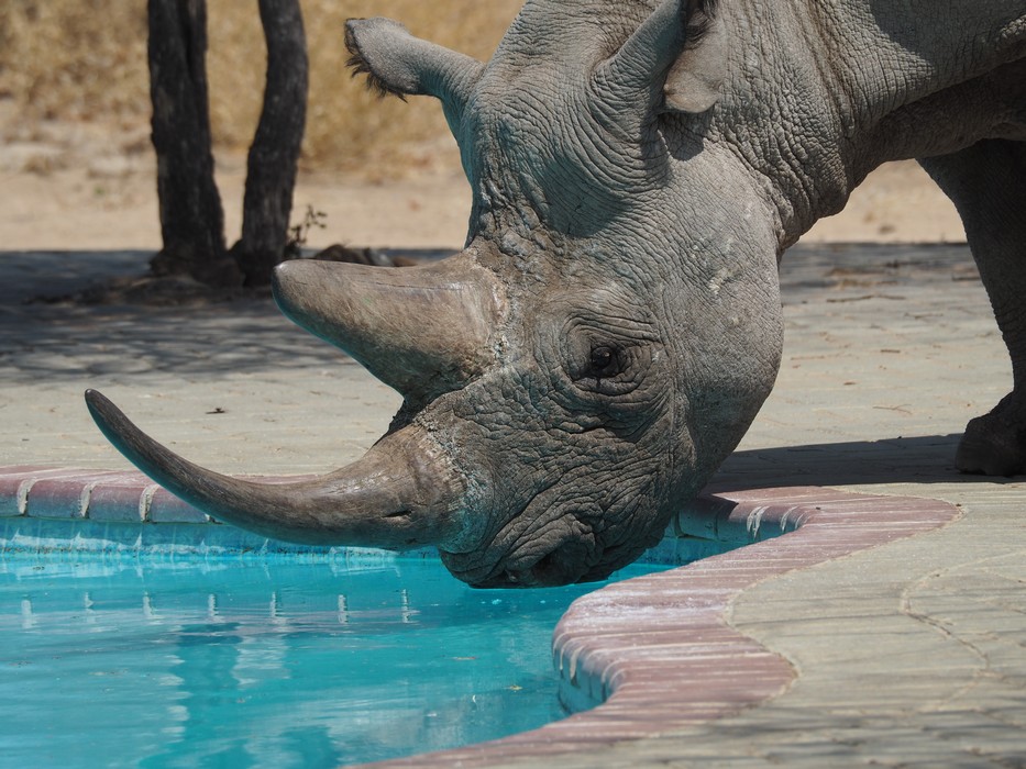 Das Rhino war mit dem Trinken aus dem Pool so beschäftigt, dass wir in aller Ruhe unsere Fotos schiessen konnten.