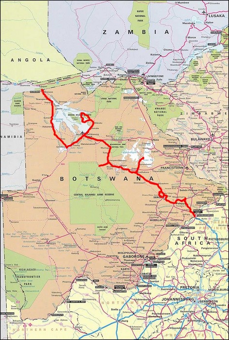 Unsere Reiseroute in Botswana 2017
