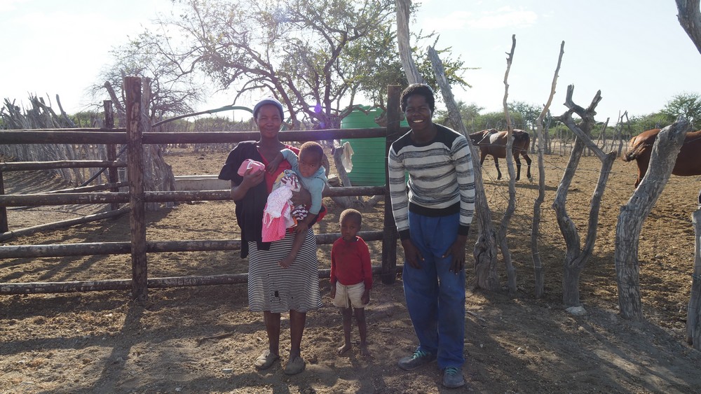 Unmittelbar nach der Grenze in Botswana trafen wir diese kinderreiche Familie, wo wir wieder Gelegenheit hatten, Kinderkleider abzugeben.
