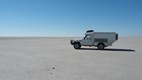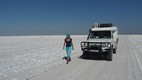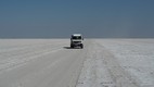 Auf diesem Salzsee sollte man sich strikt an die enge Fahrspur halten, denn das Abweichen von nur einigen Metern kann sonst zu einem gewaltigen Einbruch führen.