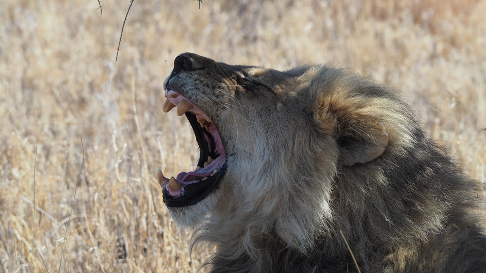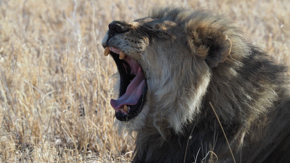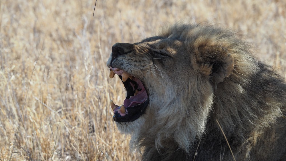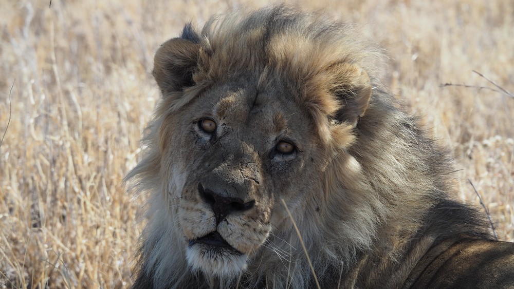 Die noch nicht abgeschliffenen Reisszähne deuten auf ein jüngeres Tier hin. Die Mähne des Löwen bildet sich erst vollständig aus im frühen Erwachsenenalter, wenn die Löwen vier bis sechs Jahre alt sind.