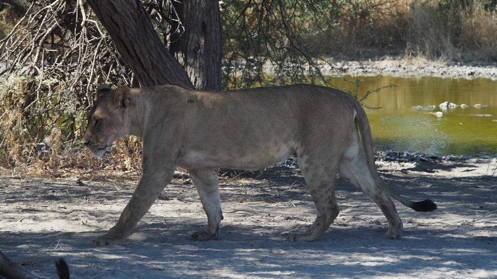 Im Letiahau Valley sind wir an einem Wasserloch auf fünf Löwen gestossen, 2 Männchen und 3 Weibchen, die das Wasserloch belagerten und anderen Tieren somit den Zugang zum Wasser verweigerten.