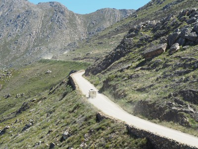 Ca. 80 Km vor der Atlantikküste bei den Bokkeveldbergen bricht hier das Plateau ab. An einer steilen Strasse fährt man in das 800 m tiefer gelegene Küstenflachland hinunter.