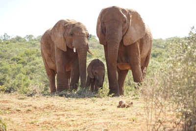 Jungtiere werden bei den Elefanten zum Schutz immer geborgen in der Mitte der Gruppe gehalten.