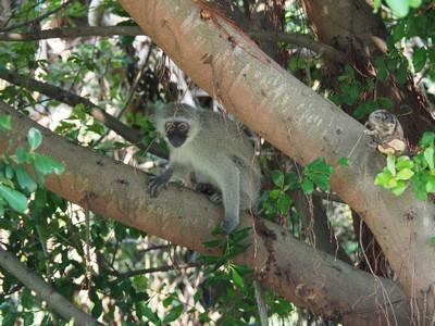 Gleich am Anfang begrüsste uns dieses Äffchen, es gehört zu der Gattung der Grünmeerkatzen.