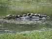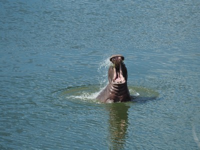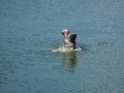 Wegen der starken Sonneneinstrahlung, was für die Haut der Tiere nicht gut ist, muss das Hippo wieder ins Wasser.