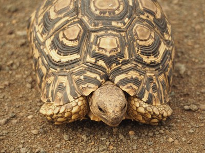 Von Südafrikas Schildkröten leben 12 Arten auf dem Land, dazu gehört diese Leopard Schildkröte. Alle zählen zu den bedrohten Tierarten.