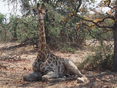 Auch Giraffen machen mal eine Pause, sitzend sieht man sie eher selten.