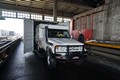 Jürg's Toyo geht als erstes Fahrzeug in den Container. Die Wahl des High Cube Containers erwies sich als sehr vorteilhaft, da uns bei der Einfahrt, oben genügend Spielraum zur Verfügung stand und der Ersatzreifen nicht vom Kabinendach entfernt werden musste.
