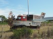 Kurz nach dem Grenzübertritt, im Norden von Südafrika, haben wir diese für das Land passende und originelle Eisenplastik gesehen.