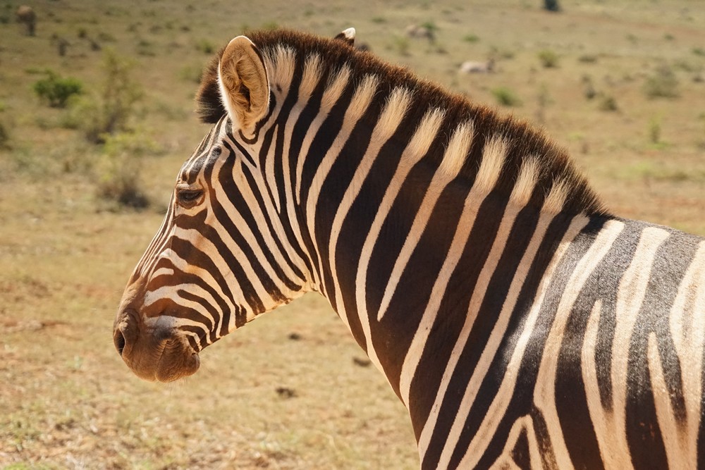 Die schwarzen und weissen Streifen der Zebras sind fast wie ein Fingerabdruck, jedes Tier besitzt seine eigene Struktur.