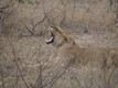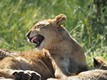 Wir hatten viel Glück und entdeckten ein Löwenpaar direkt an der Piste. Hier die vor sich hingähnende Löwin.