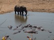 An einem Wasserloch angekommen, war schwer etwas los mit Elefanten.