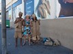 Im Nordwesten von Südafrika, in Springbok, trafen wir diese Jugendlichen, die ausschliesslich Kleider aus Jute-Säcken trugen, die sie selbst angefertigt haben.