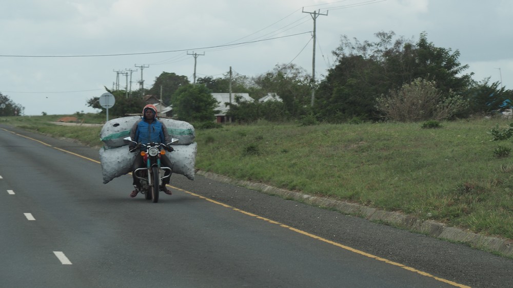 Die meisten Haushalte kochen hier mit Holzkohle. Diese wird oft mit Motorrädern transportiert, egal wie gross die Säcke auch sind.