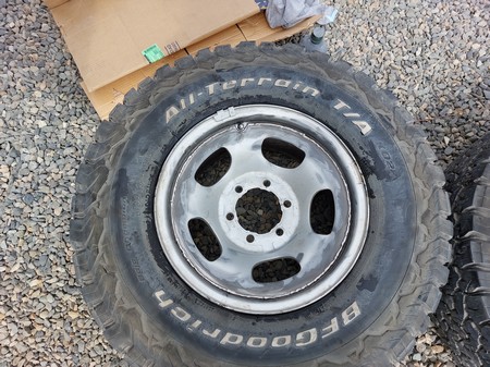 Das sind jetzt unsere neuen Felgen die aus China kommen. Das erstaunliche an diesen Felgen ist, dass sie ein maximum Load von 3200 LBS eingestempelt haben, dies entspricht 1450 Kg Traglast. Ein weiterer Vorteil der Felge ist, dass sie eine Einpresstiefe von -28 hat, d.h. für mich ich kann sie ohne Spurverbreiterung auf die Vorderachse montieren.
